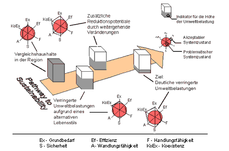 Es wird einerseits von alternativen Entwicklungspfaden von Industriegesellschaften ausgegangen, die Potentiale auf Veränderungen bieten. Ziel ist es, diese Einsparpotentiale aufzuzeigen und diese in Beziehung zu setzen mit Vorgaben aus der Nachhaltigkeitsdiskussion.